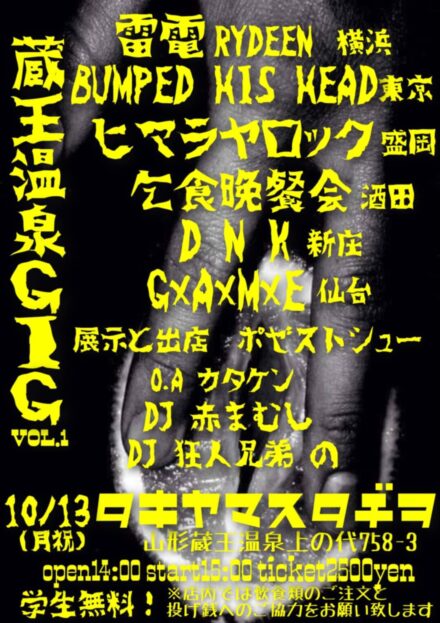 あ、仙台〜山形と東京より”BUMPED HIS HEAD”を引き連れて行きます!w